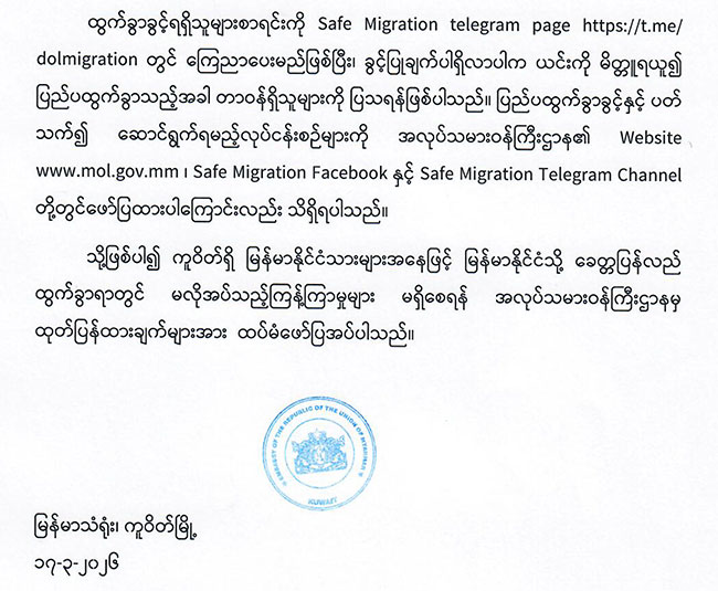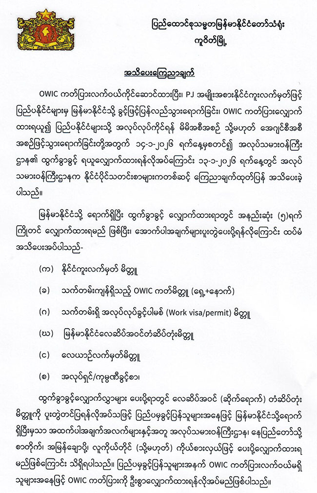 Shwedagon Pagoda Mandalay Fort Mrauk U Surrounding Chauk Htet Gyi Reclining Buddha Image Bagan Surrounding Inle Lake THE EMBASSY OF THE REPUBLIC OF UNION OF MYANMAR အသိပေးကြေငြာချက် အသိပေးကြေငြာချက် Page 1 of 5412345...102030...»Last » Goverment Websites Myanmar Ministry Websites Office of The State Administration Council MyanTrade Ministry of information Myanmar Constitutional Ministry of Trade & e-comm Ministry of Foreign Affairs Ministry of Investment and Foreign Economic Relations (MIFER) Ministry of Commerce Ministry of Livestock-Fisheries Ministry of Construction Ministry of Agriculature and Irrigation Ministry of Co-Operatives Ministry of Hotels and Tourism Ministry of Home Affairs Ministry of Education Ministry of Health Ministry Of Transport and Communication Ministry of Social welfare, Relief & Resettlement (Department of Social Welfare) Ministry of Science and Technology Ministry of Labour Ministry of Energy Ministry of Natural Resources and Environmental Conservation Ministry of ethnic affairs Ministry of Industry The Ministry Of Religious Affairs Union Civil Service Board Yangon City Development Committee Embassy Websites Myanmar Embassy Websites Brunei Darussalam Bangkok Beijing Belgrade Berlin Brasilia Brussels Cairo Canberra Colombo Dhaka Hanoi Havana Islamabad Jakarta Kathmandu Kuala Lumpur London Manila Moscow New Delhi Oslo Ottawa Paris Phnom Penh Prague Pretoria Riyadh Rome Seoul Singapore Tel Aviv Tokyo Vienna Vientiane Washington, D.C. New York Geneva Jakarta (ASEAN) Hong Kong Kolkata Kunming Nanning Los Angeles Chiang Mai CURRENT TIME Kuwait Time Yangon time အဂတိလိုက်စားမှုများ တိုင်ကြားရန် The Global New Light of Myanmar Myanmar Alinn The Mirror Findings on the Investigation of Electoral Frauds andMalpractices in 2020 Multi-party Democracy General Election